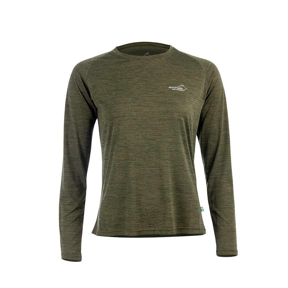 A functional t-shirt with long sleeves in moisture-wicking material. Back panel in mesh fabric for optimal breathability. Soft and flexible material. Arrak reflex print on chest and back. Normal fit that curves slightly at the waist.