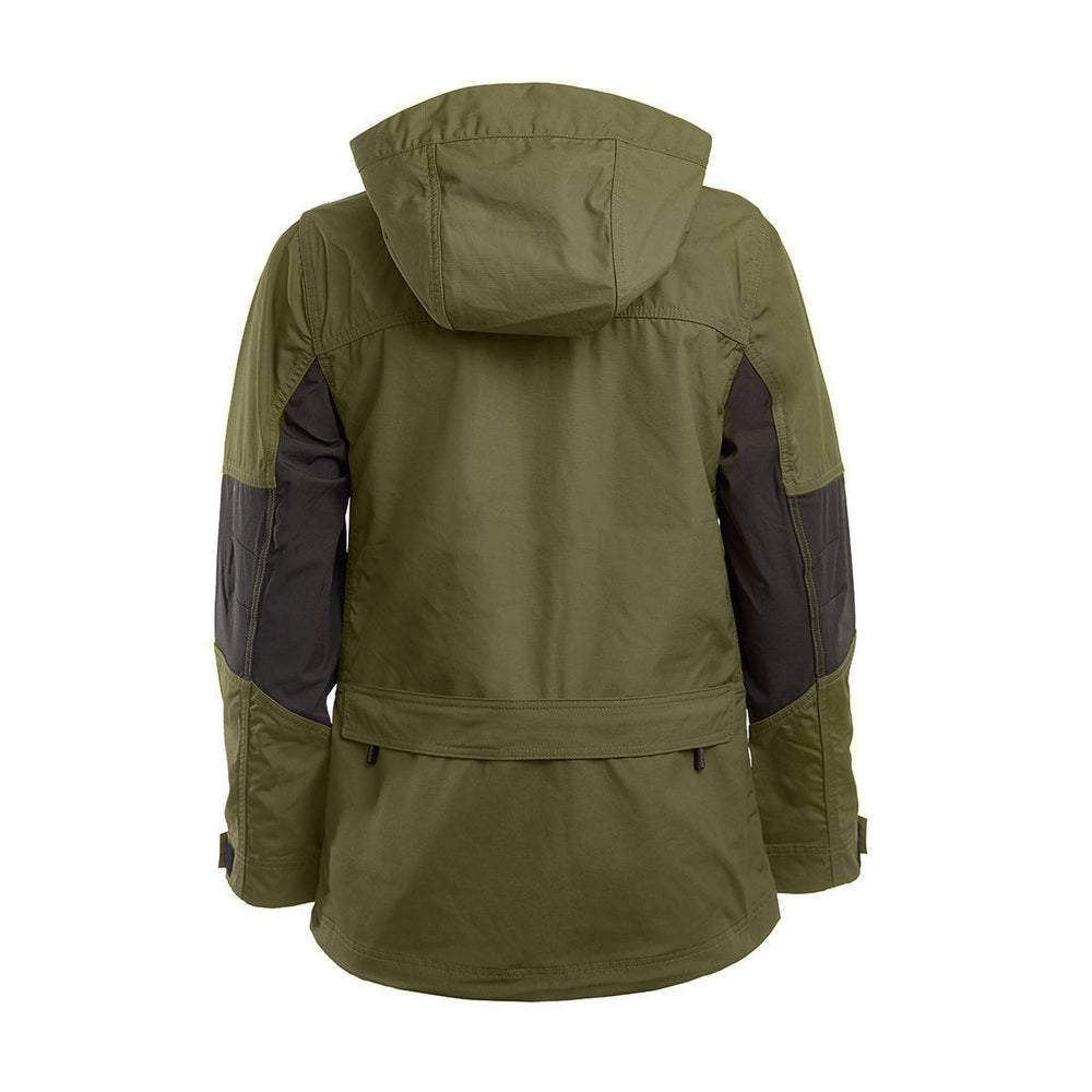 • The Arrak Hybrid is designed for comfort and freedom of movement. Made from a durable polyester-cotton blend with stretch side panels, it offers breathability and flexibility. Ventilation zippers keep you cool, while multiple pockets—including a waterproof-lined one—securely store all your essentials. The adjustable hood, sleeves, and front zipper provide a perfect fit, and water- and stain-resistant fabric keeps you ready for any outdoor activity. Stay comfortable and prepared on your next adventure with this versatile jacket.