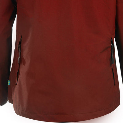 The rain jacket is made of laminated polyester, which is soft and comfortable. Inner lining in mesh fabric for best ventilation. Water column/breathability is 10,000/5,000. You have an inner pocket with a zipper, two front pockets, and a large back pocket, all with a zipper. On the chest, there are 2 pockets with waterproof zippers. Under the armpits are also waterproof ventilation zips with mesh fabric inside. The jacket's hood is adjustable for the best fit in the rain. The hood is also removable. You can also adjust the jacket around the waist and wrists. Arrak reflective logo on the chest and the hood. Slightly curved in the waist. Weight in size M 694g.