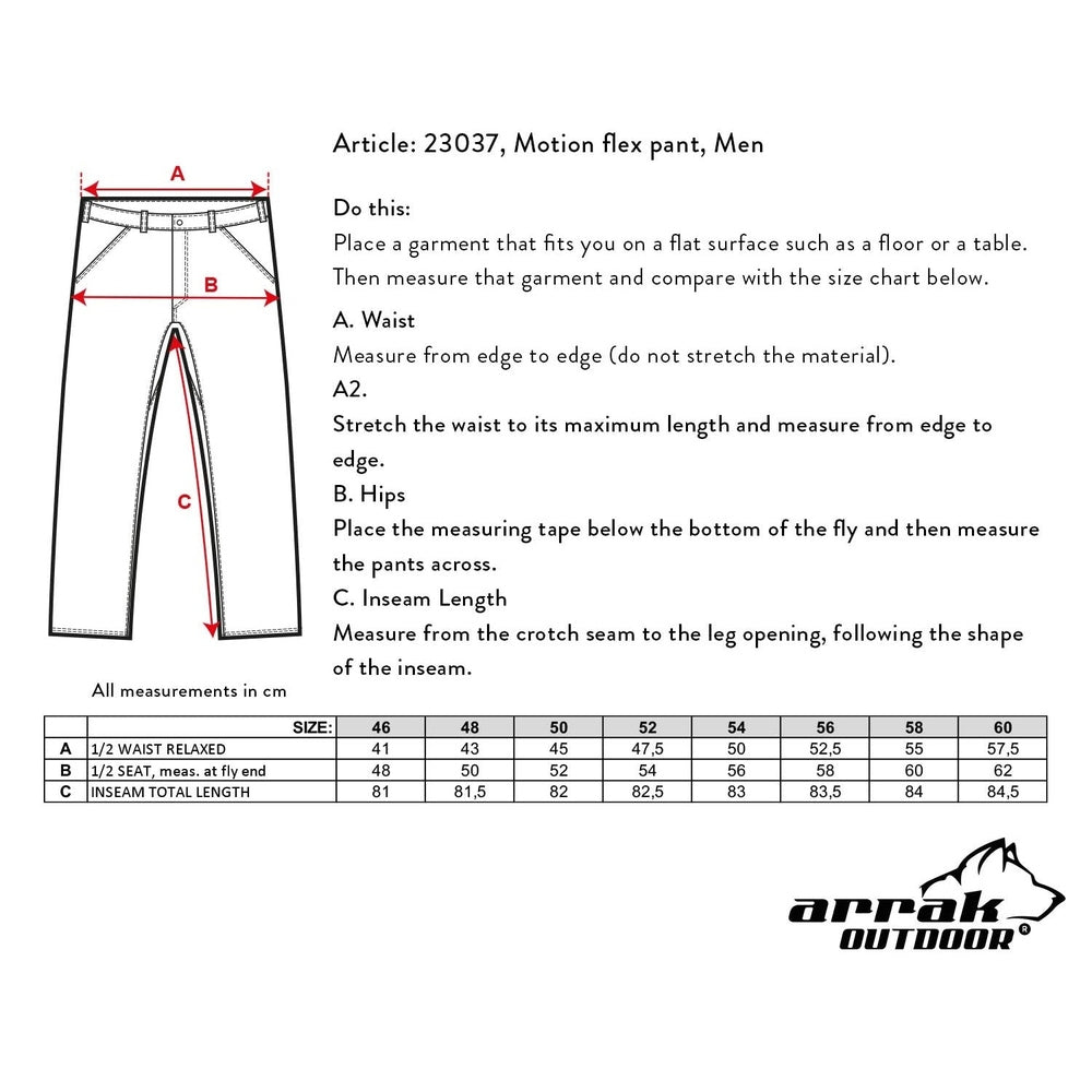 • Arrak Outdoor's Motion Flex is built to fit! Arrak created the Motion Flex with  4-way stretch fabric to allow its users comfort, style, and always the perfect fit. One of our favorite features is the waterproof fabric which begins just below the knee to the pant hem! You can stay dry, stomp in the water, walk through wet grass and maintain dry socks,