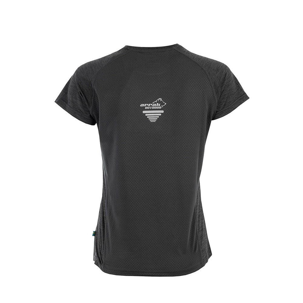 A functional t-shirt in moisture-wicking material. Back panel in mesh fabric for optimal breathability. Soft and flexible material. Arrak reflex print on chest and back. Normal fit that curves slightly at the waist.