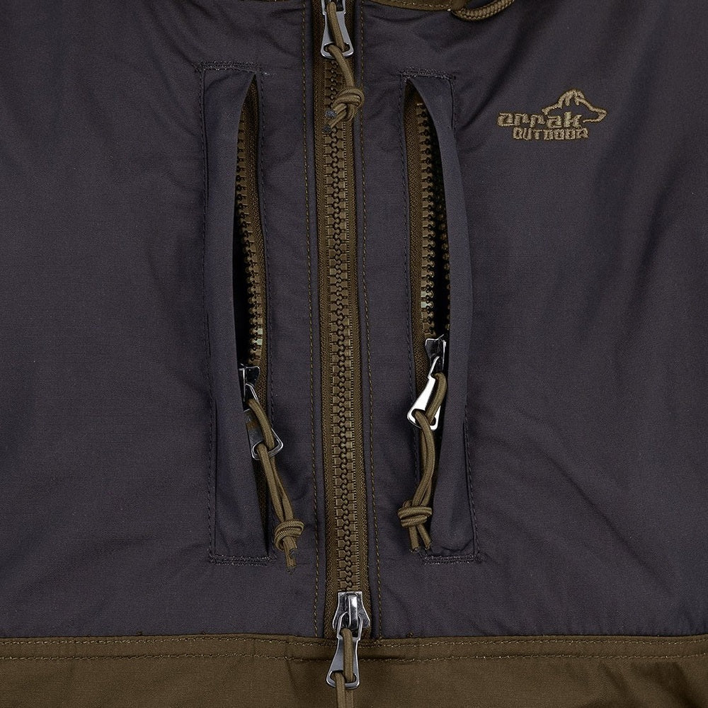 • Stay protected from harsh weather with the Arrak Outdoor Anorak Jacket. Made from a durable polyester-cotton blend with advanced water-repellent treatment, it keeps you dry in rain or snow. Multiple zippered pockets provide secure storage, while adjustable cuffs, adjustable sleeves, and an oversized hood ensure a comfortable, customizable fit. Easy side zippers make it simple to wear or remove. This jacket combines functionality and comfort for reliable outdoor performance.
