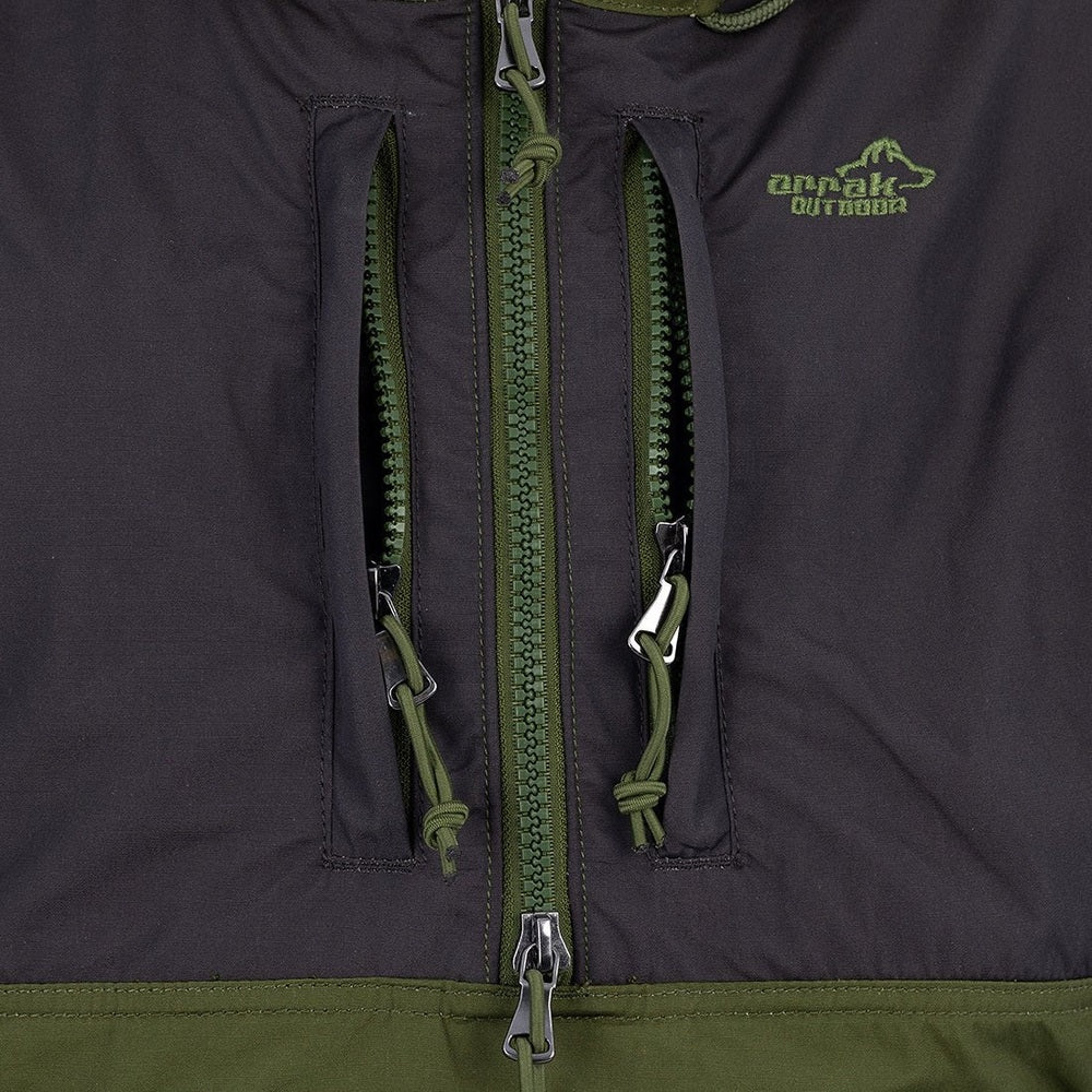 • Stay protected from harsh weather with the Arrak Outdoor Anorak Jacket. Made from a durable polyester-cotton blend with advanced water-repellent treatment, it keeps you dry in rain or snow. Multiple zippered pockets provide secure storage, while adjustable cuffs, adjustable sleeves, and an oversized hood ensure a comfortable, customizable fit. Easy side zippers make it simple to wear or remove. This jacket combines functionality and comfort for reliable outdoor performance.