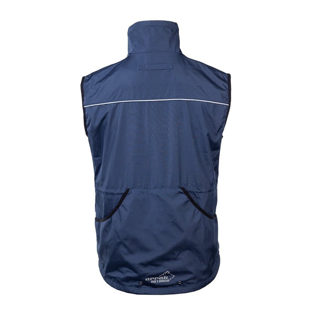 Stay warm and stylish outdoors with the versatile Arrak Jumper Vest. Made from 100% wind-repellent polyester, it features a high collar, reflective details, and adjustable 2-way zipper. With multiple pockets, including a large back pocket, this vest is perfect for any adventure. Get yours now!